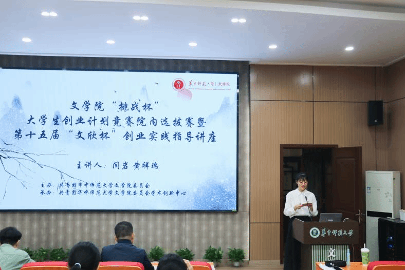 文学院讯(通讯员 李思梦 李雪琴 黄雨欣)10月15日晚,文学院“挑战杯”大学生创业计划竞赛院内选拔赛暨第十五届“文欣杯”创业实践指导讲座在文学院一楼报告厅顺利举办。活动特邀我校在“挑战杯”国赛获奖团队代表——马克思主义学院博士研究生闫岩、法学院博士研究生黄祥瑞担任评委及主讲人。