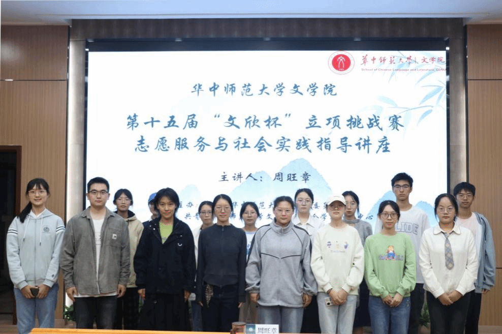 文学院讯(通讯员:薛继帅 刘依小畅 熊文卉)10月15日晚,第十五届“文欣杯”立项挑战赛志愿服务与社会实践指导讲座于文学院一楼报告厅举行,文学院团委副书记周旺章受邀担任主讲人。
