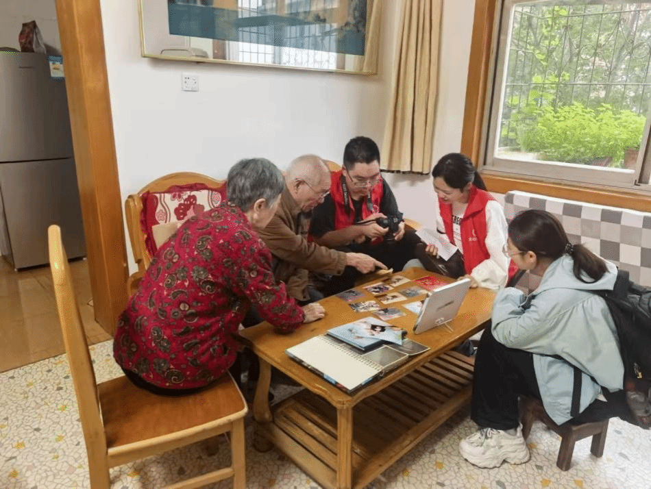 文学院讯(通讯员 李雪琴 王彤 王瑶 任垭伍 罗健琳 安雅瑄)10月17日至19日,文学院志愿者在武汉市洪山区珞南街道七二二社区开展“金婚岁月,爱在重阳”金婚爱情故事采访志愿服务活动。该活动由七二二社区与共青团华中师范大学文学院委员会主办、文学院青年志愿者协会(以下简称“文学院青协”)承办。在社区工作人员带领下,志愿者分组前往社区活动室或老人家中,通过面对面访谈与纪实摄影,记录老人们跨越半世纪的爱情故事和生活感悟,留存老一辈婚姻与家庭的口述历史。