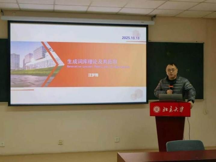 在北京大学计算语言学研究所,同学们聆听了两场高水平的学术讲座。首场报告由语言所所长王厚峰教授主讲,他回顾了研究所的发展历程与重要成就,随后聚焦人工智能领域,系统阐释了大语言模型的技术特点、应用前景与现实挑战。王厚峰教授指出,技术革命在带来传统领域转型压力的同时,也催生着新的学科增长点与就业空间,关键在于主动把握交叉融合的机遇,实现人文与科技的协同发展。北京联合大学教授、北京大学计算语言学研究所博士后汪梦翔教授为同学们带来了题为“生成词库理论及其应用”的专题讲座,汪梦翔教授以扎实的理论功底和丰富的语料实例,深入浅出地讲解了生成词库理论的核心概念及应用实践。讲座内容紧密衔接语言学理论与计算机前沿技术,极大地激发了同学们的兴趣。