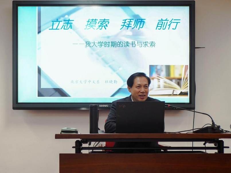 10月18日抵京后,基地班学子前往北京大学,开启首日学术交流活动。在北京大学中文系,同学们聆听了由北京大学中文系周韧教授和北京大学中文系主任杜晓勤教授带来的精彩讲座。深耕语言学领域的周韧教授以“理解汉语语法特点,做好汉语语法研究”为主题进行了授课,力破语言学枯燥的标签,让同学们感受到语言学研究的趣味与魅力所在。在古代文学领域饶有建树的杜晓勤教授用自身的求学与成长经历,展开了以“立志、摸索、拜师、前行”为主题的讲座,总结了自己认真研读、意外成文、到学报发表的求知求学路,也对同学们的学习研究道路寄予了殷切期望。