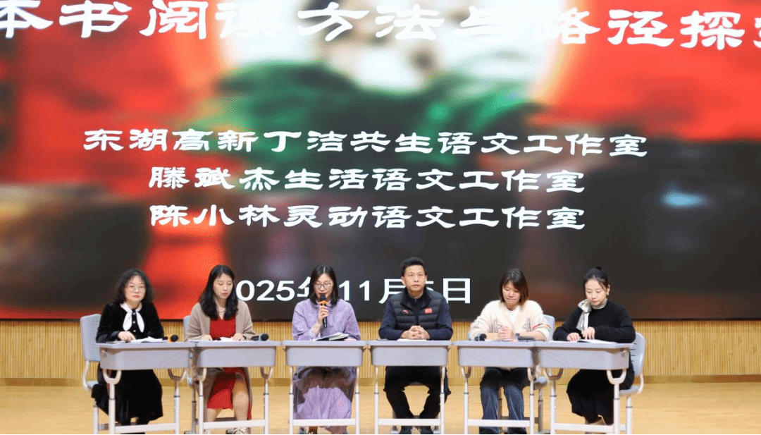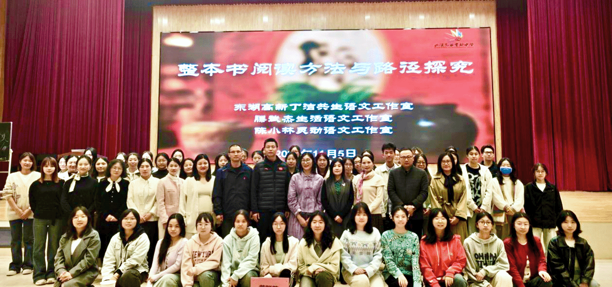 此次活动由丁洁名师工作室牵头,联合黄群芳名师工作室、陈小林名师工作室、滕斌杰生活语文工作室、华中师范大学文学院2023级、2024级卓越班共同举办,武汉市光谷实验中学金融港校区承办。本次研修活动以鲜活的课堂实例和专业的理论讲解,为文学院学子搭建了理论与实践对接的平台,提供了观摩中学语文一线教学、提升专业素养的宝贵契机。