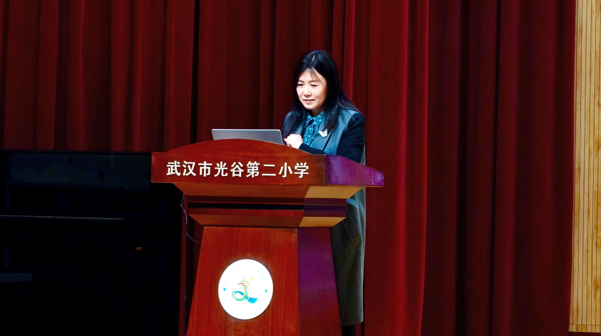活动尾声,武汉市教育科学研究院黄群芳主任以《关于整本书阅读的思考》为题作专题报告。她从“为何读”“问题何在”“如何读”三个层面系统阐述整本书阅读教学。她指出,整本书阅读应让学生产生“心动的感觉”,并提出四条路径:关注情感共鸣、鼓励自主探索、推动全员参与和营造阅读氛围。黄群芳强调,教师应是“点火人”而非“牵线人”,要尊重学生的阅读主体地位。