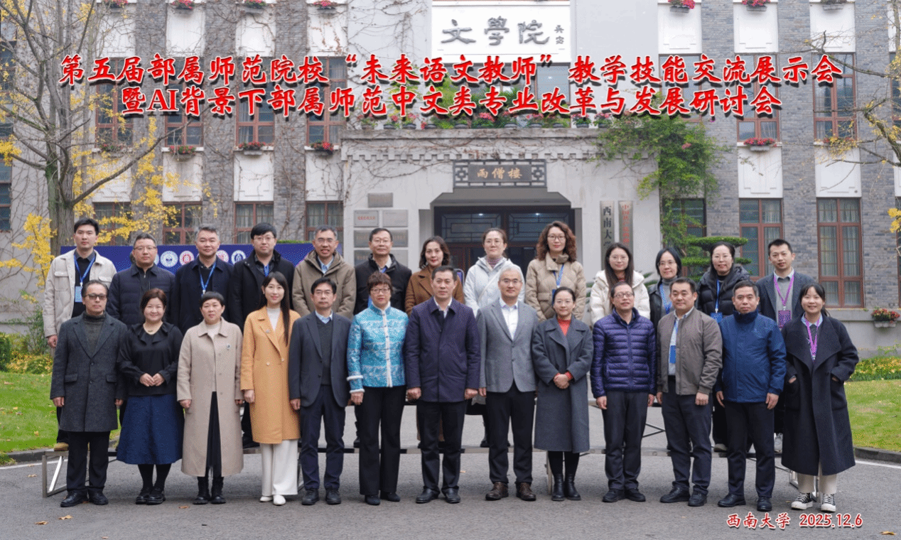 文学院讯(通讯员 童锣颖 黄欢)12月6日至7日,由西南大学文学院主办,北京师范大学文学院、华东师范大学文学院、华中师范大学文学院、东北师范大学文学院、陕西师范大学文学院协办的第五届部属师范院校“未来语文教师”教学技能交流展示会暨AI背景下部属师范中文类专业改革与发展研讨会在西南大学顺利举行。华中师范大学文学院副院长陈蓓带队参会,我院六名师范生选手在比赛中表现亮眼,荣获特等奖1项、一等奖2项、二等奖3项。