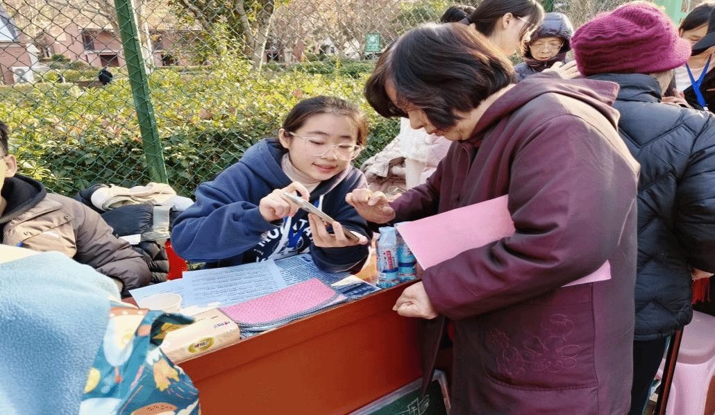 活动当天,“公益助老”集市在社区拉开帷幕。文学院青协聚焦老年人日常生活需求,精心设置“手机学堂”“反诈同行”“游戏乐园”三大服务专区。志愿者们耐心指导老年居民使用智能手机,普及防范电信诈骗知识,并通过趣味游戏营造欢乐氛围,吸引众多居民热情参与,现场气氛轻松热烈。