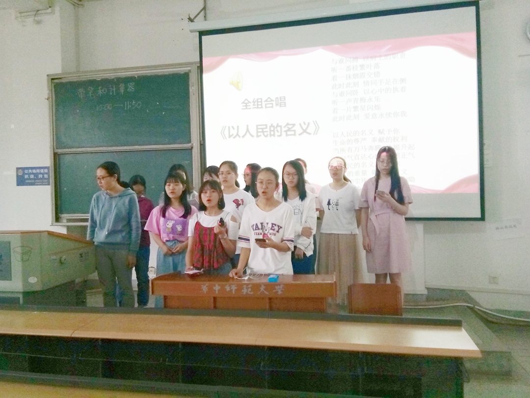 第四、五小组学员依次进行课前展示。第四小组学员以“十九大——生态文明建设在路上”为主题,首先由组长华智娴和学员陈雨昕依次讲解了“新形势下的理论创新”、“生态建设关键词”等有关话题,接着展示了小组视频。第五小组围绕“以人民的名义,反腐倡廉”话题,从“会议报告的提出”、“媒体宣传”、“反腐倡廉案例”三个方面进行讲解,最后,由全组合唱《以人民的名义》结束本次展示。刘高权表示:“两个小组的展示形式很新颖,各有千秋,全组成员全部参与,值得提倡。”