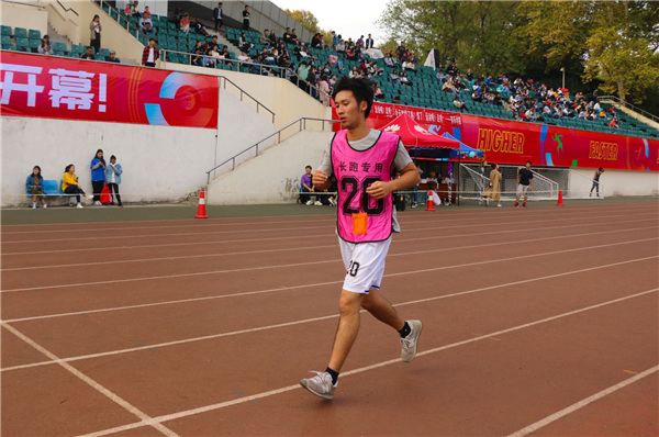 比赛开始后,起初几圈,文院运动员们努力冲到队伍的前面,但随着圈数的增加,大家的速度有所放慢,虽然落后,但他们依然跟紧自己的队伍不放弃。其中,选手龙逸橙的耐力与其他人相比稍好,所以在整体上处于小组中的前列;而其他几位选手也保持着自己的节奏,不断调整呼吸,咬牙坚持着完成了比赛。