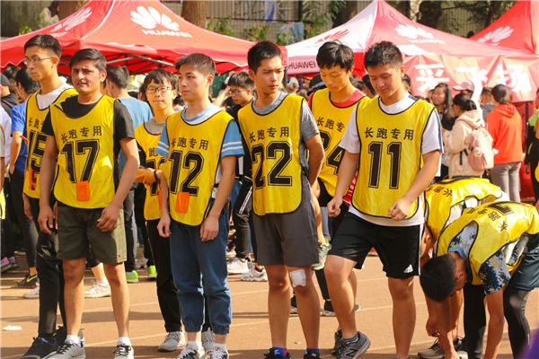 在这过程中,文院运动员贾佳辉在比赛途中出现体力严重不支的情况,面色苍白,呼吸急促,渐渐落后。工作人员曾告诉他“如果实在撑不下去,可以先休息,”但贾佳辉选择坚持跑完全程。当小组比赛进入尾声时,全场只剩他一人,汗水早已打湿了他的衣服,双腿也愈发沉重,但他依然没有放弃。文院的许多同学都自发地加入到陪跑的队伍当中,给他精神上的支持;其他学院的学生也为他呐喊助威,一些外国友人看到他身上那种锲而不舍的毅力,也为他叫好,其中,一位外国观众对贾佳辉身旁陪跑的同学说:“Tell him not to stop,keep running.”在全场的加油声中,贾佳辉最终完成了他的5000米长跑比赛。