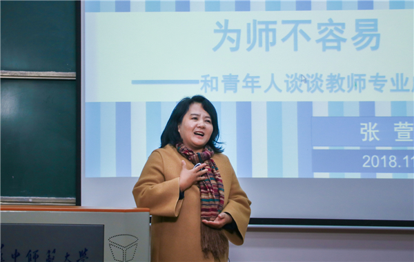 (通讯员:叶政通 刘长静)11月24日晚8:00,由华中师范大学文学院主办,文学院团委、学生会师范生训测部承办的第十四期“师说”讲座于文学院2201教室举行。本次讲座由张萱担任主讲人,她以“为师不容易——和青年人谈谈教师专业成长”为主题开展讲演。