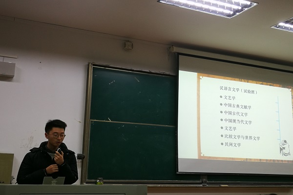 (通讯员:宋喆)2018年12月9日晚5点,第一期“明途”专业分流讲座在7302教室顺利举行。2017级文院非师辅导员王多老师出席此次活动,全体非师同学参加。此次活动主讲人为文学院2015级汉语言文学(试验班)学生徐子昭和李继豪。