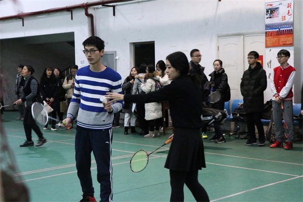 在混双比赛中,李程老师和18级学科语文的谭玉婷同学第一次配合双打,在李老师的带领下,混双组很快进入状态,比赛一度进入胶着状态,最终虽惜败对手,但师生配合为我们展示了精彩的比赛。