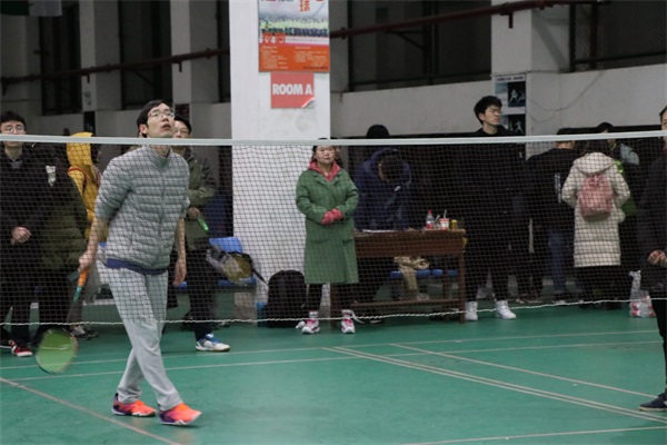 八号上午,比赛在佑铭体育馆正式拉开了序幕。文学院一队由陆方喆、刘涛、高景老师,17级比较文学专业卢建飞、18级汉语国际教育赵琦、古代文学任萌组成,迎战化学学院。男双陆方喆、刘涛老师,女双高景老师、任萌,男单刘涛老师,女单赵琦,混双卢建飞、赵琦遭遇强劲对手,五组均惜败,提前结束比赛。但师生协力,球场上奋力拼搏的身姿和勇于迎战的精神令人印象深刻。