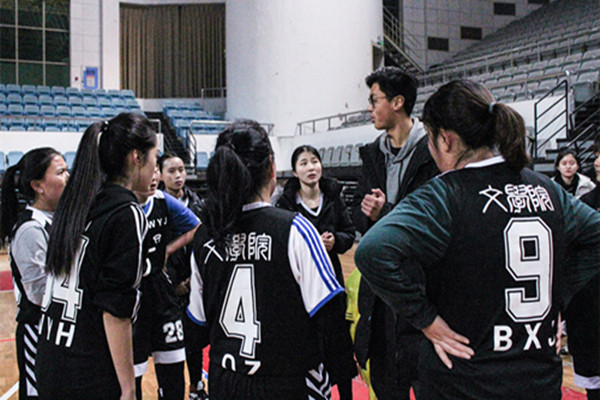 比赛进入第二节,白雪洁通过截球为文院赢回主动权,紧接着21号周宝弟采用传切战术,为文院再挣得2分,赢得全场欢呼。但随着比赛推进,队员们体力渐渐下降,失误次数不断增加。同时,公管女篮利用文院失误连续进球,迅速将比分拉近。文院教练申请暂停,商讨战术,文院的同学们也为队员加油鼓劲儿。战术调整后,文院女篮展开猛烈进攻,但因手感欠佳,多次打铁。上半场以8:6的比分结束。