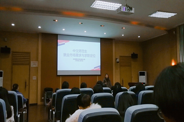 (通讯员:马欣宇)2018年12月7日下午四点,2015级中文师范生主题教育课在文学院一楼报告厅举行。针对现阶段文学院公费师范生的就业情况,帮助学生在招聘中取得更好的表现,2015级汉语言文学专业辅导员汪青老师,以“中文师范生就业市场需求与求职定位”为题展开授课。2015级汉语言文学专业全体同学参加了此次课程。