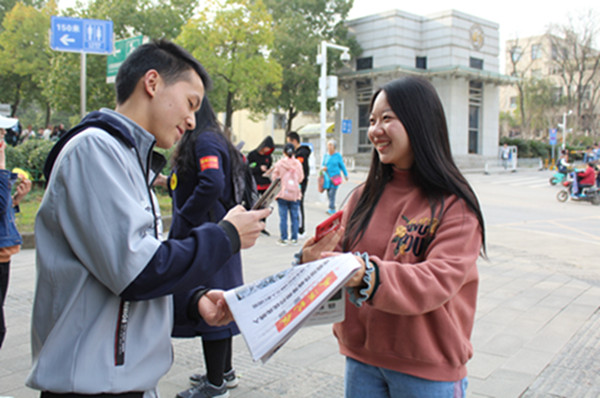 活动开始前,文学院青协会长李雨欣向志愿者们强调了活动纪律和一些注意事项。报纸分发后,志愿者们便各自成组并迅速行动起来。在前往义卖地点的路上,成员们都反复思考着义卖时的措辞,但由于大部分志愿者是初次参加义卖活动,经验不足,起初卖出的报纸较少。但他们并没有因此而气馁,而是不断总结经验。文院非师三班的郑梦淇提出,义卖报纸时可以主要针对学生群体。