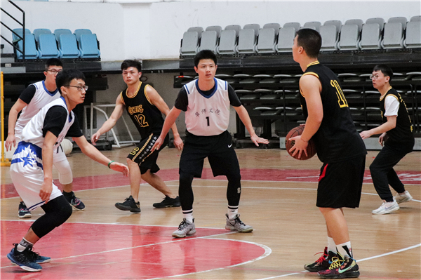 队员下场稍作调整后,很快进入到第二节的比赛,文院男篮找准机会开局反击、快攻得分,场上比分扳平为9:9。但由于文院队员取胜心切,在防守过程中出现多次犯规,工程中心依靠罚篮将比分追回。上半场比赛结束前,文院1号何宇诚连续两次接到队友传球快攻得手。半场结束,比分锁定在15:13,文院领先两分。换边再战,由于双方球员体力消耗过大,比赛进入相持阶段,互有拉人、阻挡等犯规动作出现,但文院还是保持住了领先优势。