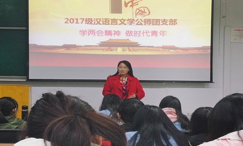 (通讯员:孙雪仪 黄雅雯)2019年3月17日晚,文学院2017级公费师范生利用晚点名时间开展了年级团日活动,学习两会精神。