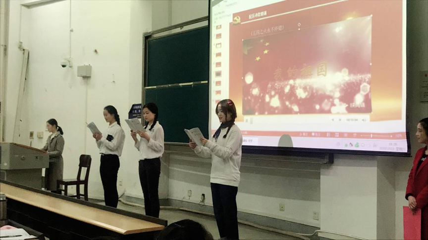 活动的最后环节,主持人韩亚楠对五四运动在当代的重要意义进行总结,并传达了党中央和国家教育部门对在青年学生中广泛开展以“弘扬五四精神,做全面发展的一代新人”为主题的实践教育的决定。最后,她向在座的各位同学发出号召:在五四运动一百周年之际,先辈们的重任已经交到我们手中。学习五四精神,从青年做起!