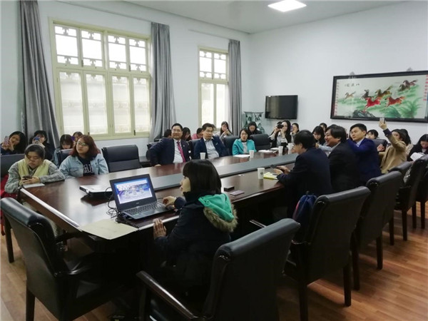 (通讯员:邹迅)3月27日上午,台湾中原大学两岸交流处处长许世哲一行来到我院,并在三楼会议室举行暑期营队宣讲答疑会。本次宣讲由华中师范大学港澳台办公室副主任彭韬主持,文学院党委副书记秦伟,港澳台办公室董珊、汪亭亭和文学院辅导员赵娜、王多出席了本次会议。本次会议旨在对台湾中原大学暑期实训营活动进行宣讲答疑,吸引了众多同学前来参与。