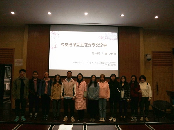 (通讯员:黄蕾 符雨莹)2019年4月2日下午14:30,由问文学院16级师范系学生会主办的首期校友进课堂主题分享交流会在文学院一楼报告厅举行。本次活动请来的嘉宾是2012届毕业的直系学长孙昌兴。