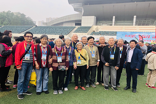 在简短的开幕式后,文学院的老教授、离休干部们欢聚操场,喜悦地攀谈。现场一片欢声笑语,气氛热烈活跃。志愿者为老人们拍照留念,定格下他们欢乐的瞬间。