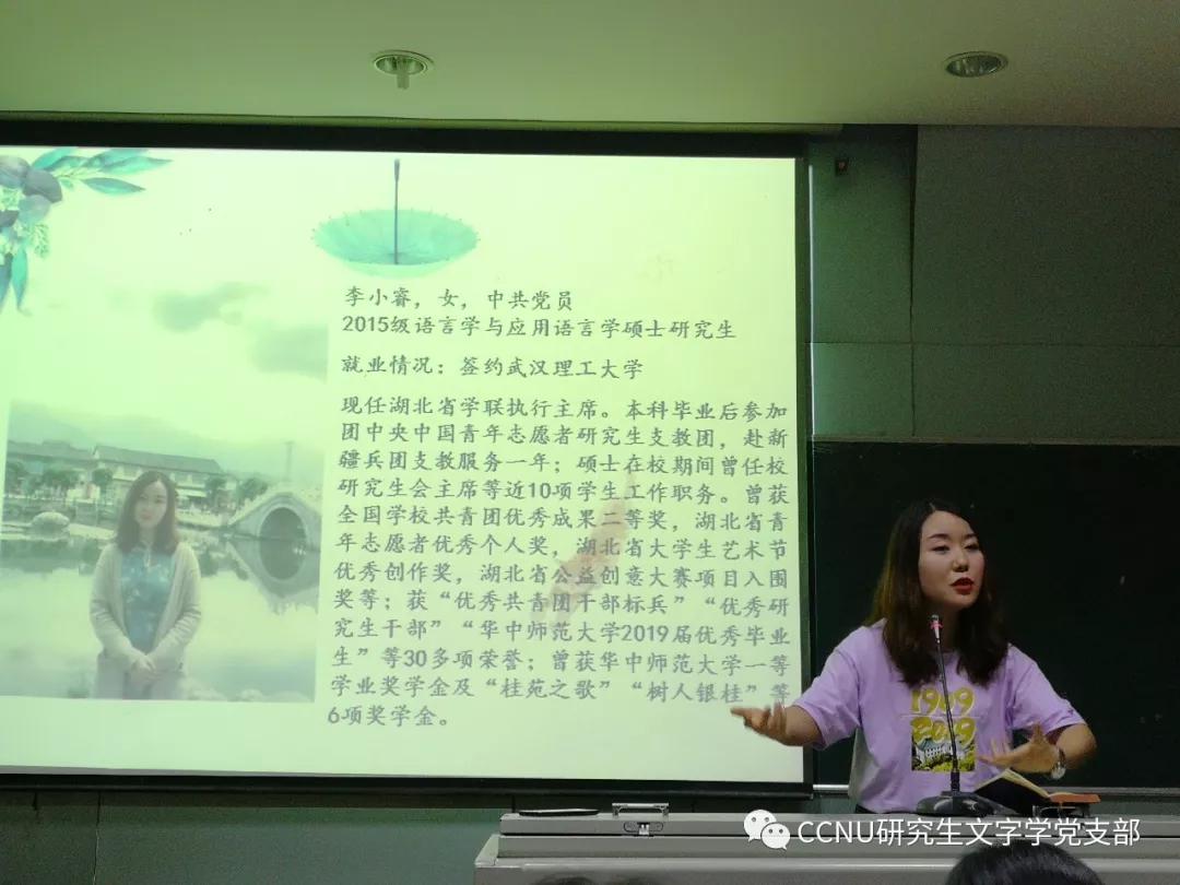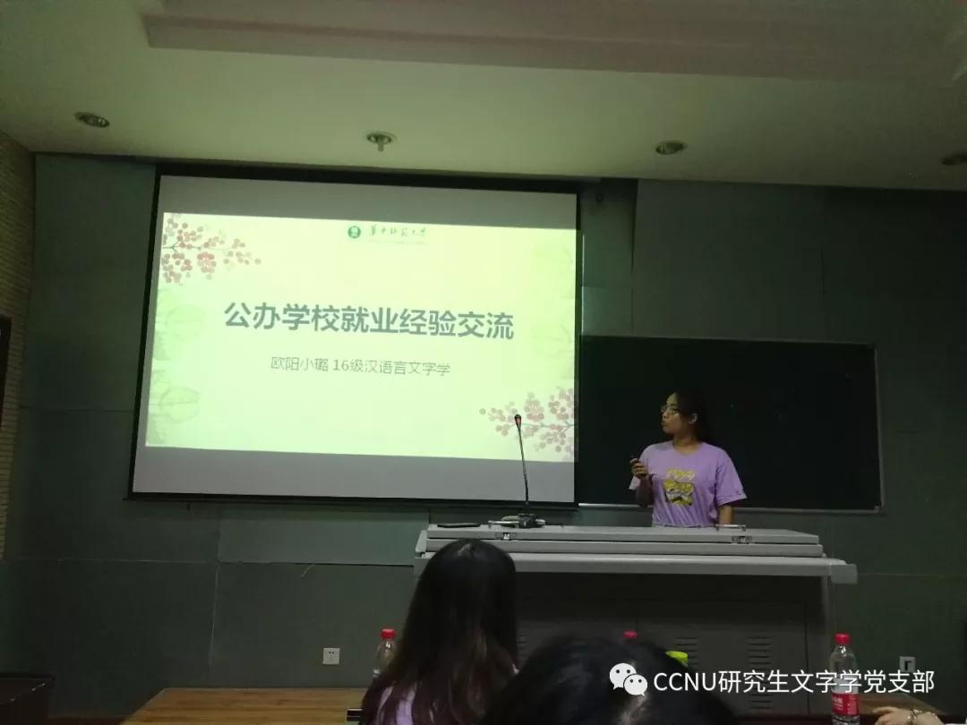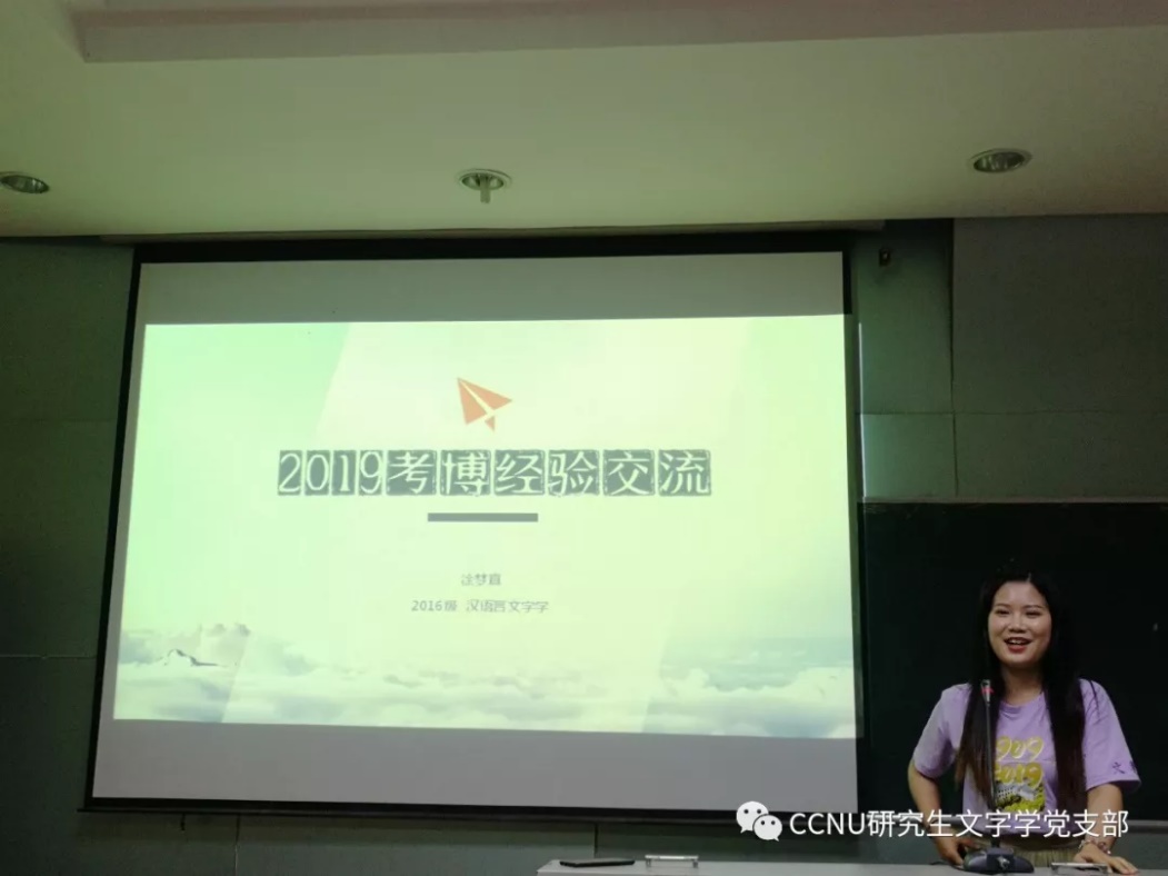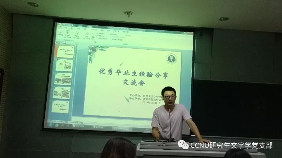 (通讯员:覃宇鸽)2019年5月30日,研究生文字学党支部于文学院三楼会议报告厅开展了2019届优秀毕业生经验分享交流会。本次交流会由文字学党支部17级党员同志李震策划并主持。活动共邀请了欧阳小璐、李小睿、徐梦真三位在就业、考博方面有代表性的学姐与同学们见面交流,分享自己在求职、求学过程中的心得体会和宝贵经验。研究生院2017级、2018级部分同学参加了此次会议。