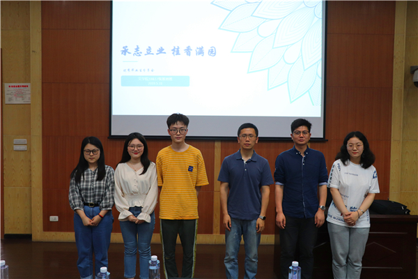 (通讯员:叶政通 龙佳淇 王心泉)5月31日中午,由文学院2018级基地班主办,文学院2017级基地班协办的“承志立业,桂香满园”——优秀毕业生分享会活动在文学院一楼报告厅举办。文学院分党委副书记徐福刚、17级基地班班导师窦金龙、18级基地班班导师石超出席本次活动。文学院2015级本科生潘雨婷、周书羽、周明洁、张又升受邀参加本次活动,担任分享嘉宾。