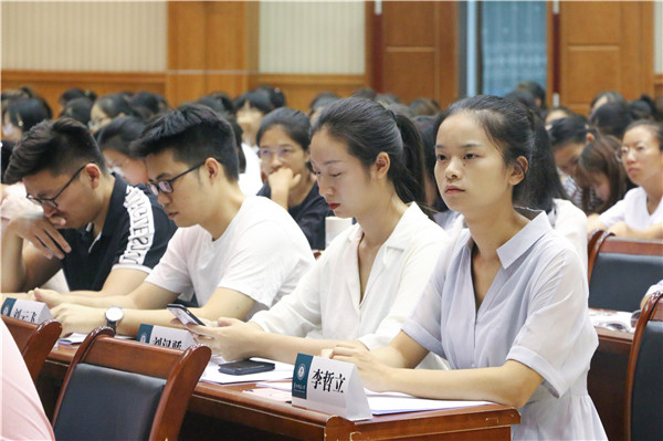 活动最后,由李哲立老师与刘汉骄老师进行总结发言。她们表达了对新生的祝愿与期待、关怀与喜爱,她们许下承诺,将毫无保留地帮助引领2019级新生适应大学生活,让每一位新生都能在桂子山上筑梦启航。本次“开学第一课”为文学院全体新生明确了大学期间应该努力的方向和奋斗目标,帮助他们找准定位,更快地融入大学的学习和生活。