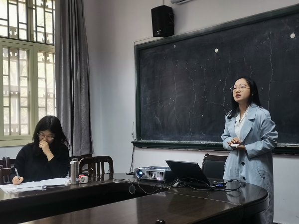分享会开始,严畅同学从“什么是微课”和“微课的特点”开始,依次分享了“微视频选题”“教学设计与幻灯片”“配音”“后期剪辑”“参赛时的现场讲解”五个环节的要点。严畅同学结合自己在微视频制作比赛中的经验和感悟,以具有学科特色的具体微视频作品为例,详细直观地向卓越班同学展示了微视频制作的基本要求,包括选题切口要具体,合理布局教学环节,选择合适的动画模板,配音环节提前拟稿并记录,精准剪辑,现场讲解要清晰表达、展示亮点等重要内容。除此之外,严畅同学还特别指出,要注意从微视频制作到比赛展示中各个环节的细节部分,例如配音时要注意咬字、语速和语调,剪辑时要注意音量、音乐的调整,以及现场讲解时要注意教资教态等等。随后,严畅同学分享了微视频制作中常用的软件,并完整播放了自己团队小组的参赛作品《过零丁洋》,让卓越班同学对微视频制作有了完整的成果认识。