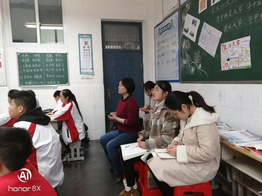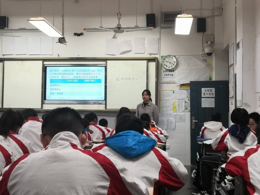 2019年11月18日上午,华中师范大学文学院2018级研究生宋成道和2016级本科生安永逸代表英格中学实习小组分别于七(10)班和七(11)班进行公开课展示。实习指导老师张筱南老师,英格中学七年级备课组长陈贵玉老师以及实习小组的8名组员共同参加了这次公开课活动。