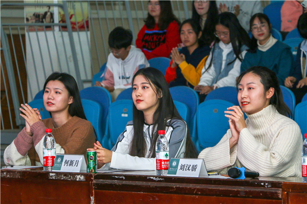 11月23日下午,以“五四共筑青年梦,华诞载承中国魂”为主题的2019年第十一届时政知识大赛在大学生活动中心五楼举行。本次活动由共青团华中师范大学文学院委员会主办,文学院团委学生会马列研究会承办,新闻传播学院团委学生会马列研究会、社会学院团委学生会马列研习会、城市与环境科学学院团委学生会马列研究会、教育信息技术学院团委学生会马列研究会协办。文学院团委副书记刘汉骄、学生团委副书记何新月,教育信息技术学院学生团委副书记刘可芳,城市与环境科学学院学生团委副书记尹宁玮,新闻传播学院学生团委副书记周琦作为评委出席了本次活动。
