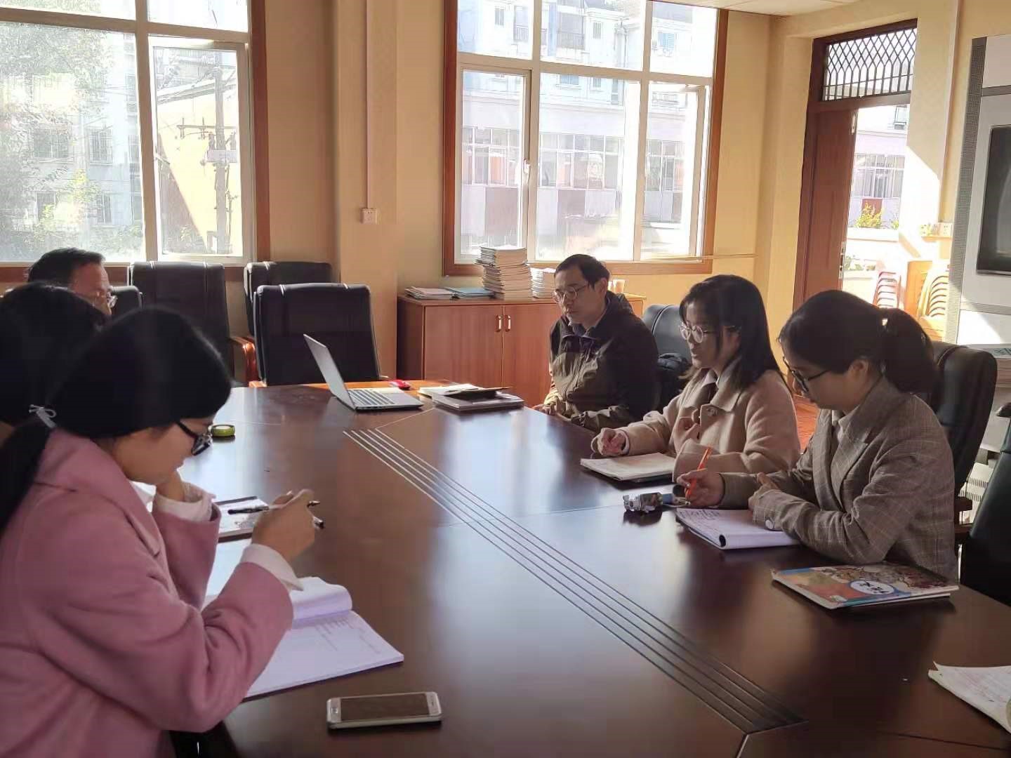 听完了我们的汇报以后,张主任和黄老师对我们实习小组的实习情况给予了肯定,组员在纪律上能够做到严格要求自己,在教学上踏实肯干,也为学校开展朗诵比赛、运动会和监考等活动做出了一份贡献。最后张主任也对我们提出了殷殷期望,希望我们掌握新的教育技术,在未来的工作中根据学生的实际情况和教学效果来理性地推进新课改。教育是一门艺术,从教之路还很漫长,其中有很多地方还需要我们慢慢摸索。
