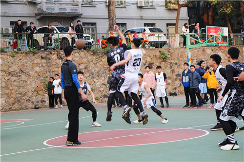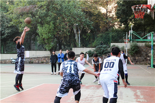 下半场交换场地,数统学院11号球员发球,数统男篮率先获得2分,文院男篮比分暂时落后。由于取胜心切,双方急于进攻,陷入僵持,文院20号龙逸橙进球得分率先打破了僵局,极大鼓舞了文院男篮的士气。