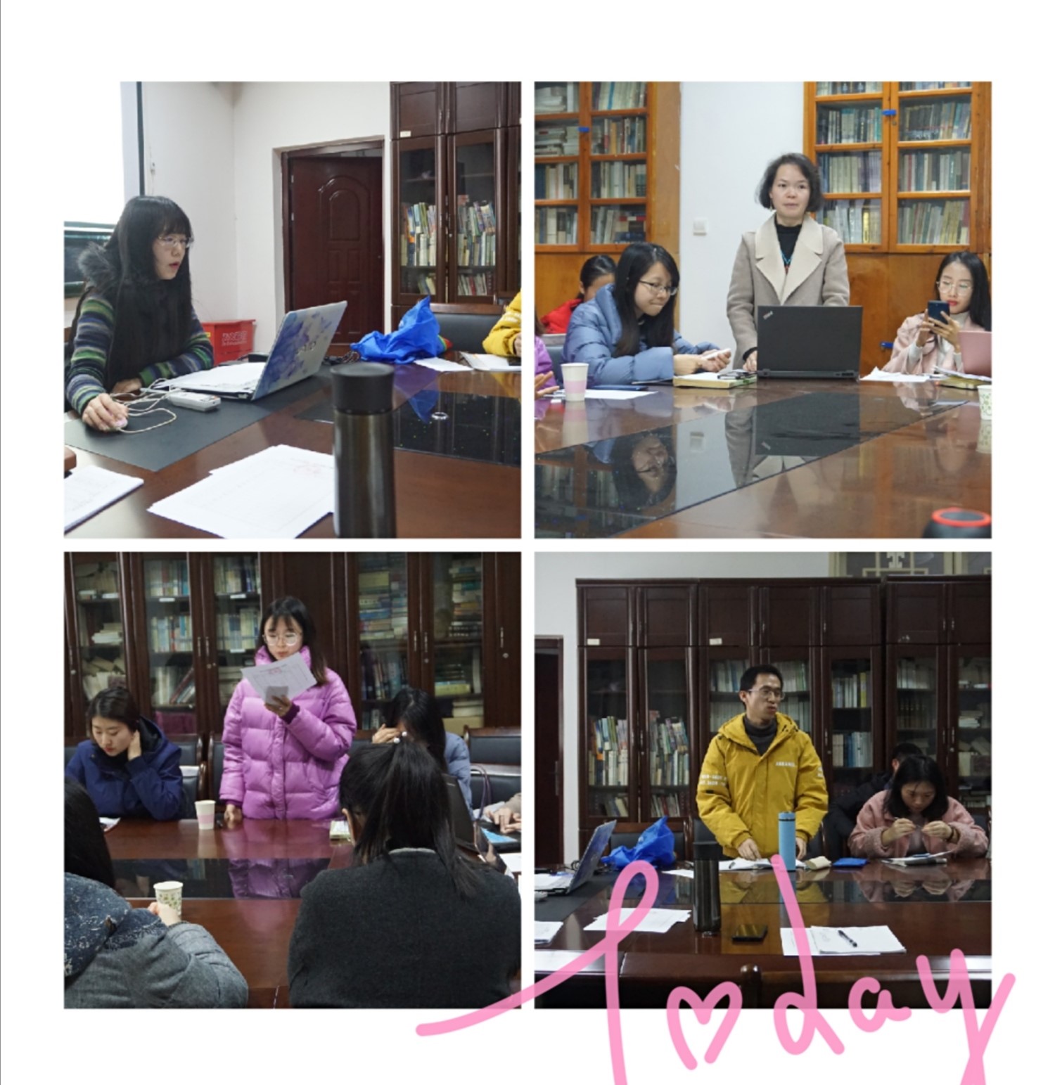 (通讯员:易雪梅)根据学校党委《关于召开“不忘初心、牢记使命”主题教育专题组织生活会和开展民主评议党员的通知》,文艺学党支部于12月13日晚在文艺学教研室开展党员活动会议,文艺学党支部正式党员、预备党员和积极分子出席参加。会议由文艺学党支部书记孙铭主持。