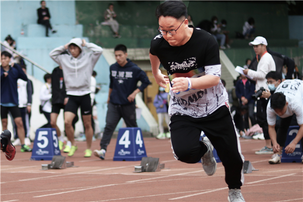 比赛开始前,通过检录的运动员们在起点线处有条不紊地进行着拉伸、屈膝、弹跳等赛前准备活动,以求用最好的状态迎接比赛。第一赛道上的土旦次仁镇定自若,他表示,能够代表学院参加比赛,他感到十分荣幸,不过心情激动的同时也感受到了一定的压力,希望自己能够尽力而为,不留遗憾。随着“各就各位,预备——”口令的发出,运动员们迅速就位,全身紧张,蓄势待发。接着,发令枪响,全体运动员迅速起跑,在跑道上展开了激烈的角逐。土旦次仁目光坚毅,直视前方,一往无前。赛道两旁的文院学子也深受比赛气氛感染,奋力呐喊,摇旗助威,为土旦次仁鼓劲加油,声声呐喊响彻赛场,振奋人心。最后,土旦次仁在激烈的决赛赛场中以14.20秒的成绩获得了男子一百米比赛的第八名。