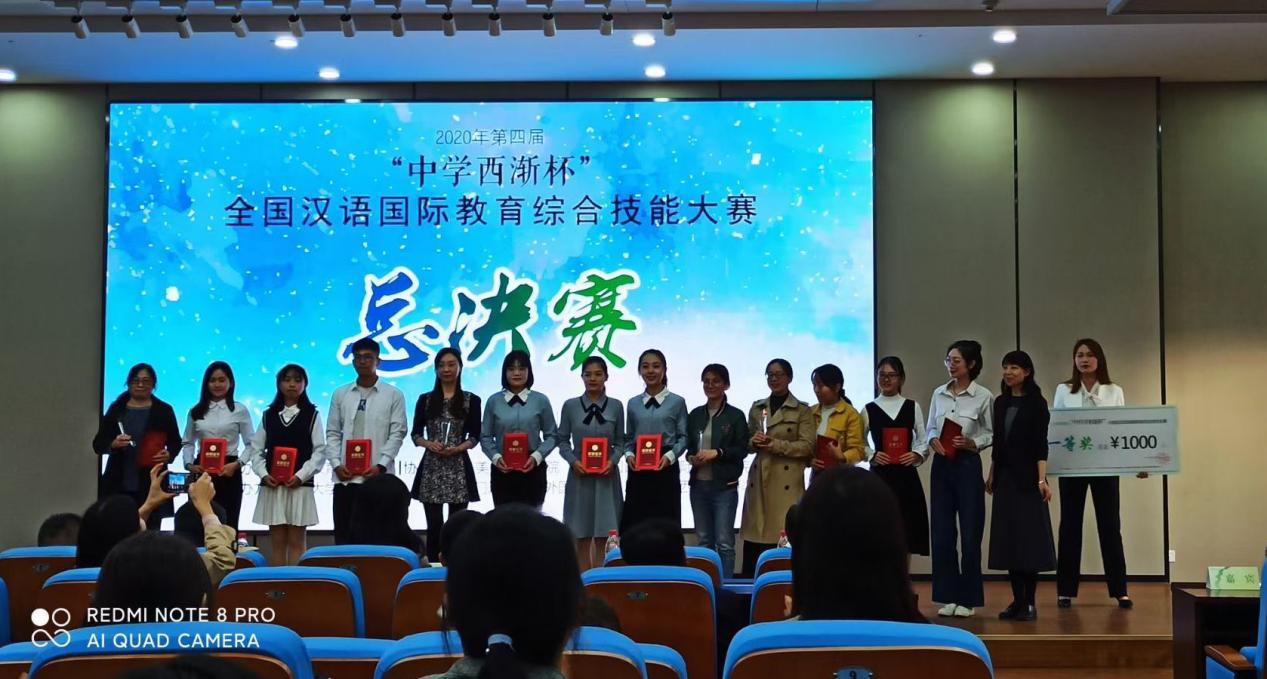 (通讯员 吉晨瑜 周颖)11月8日晚,第四届“中学西渐杯”全国汉语国际教育综合技能大赛在位于江苏扬州的扬州大学瘦西湖校区落下帷幕。文学院对外汉语教研室的廖继莉老师带领文学院汉语国际教育专业的三名本科生周颖、张宏宇、吉晨瑜代表我校参赛,与包括浙江大学、中央民族大学、苏州大学、扬州大学等在内的全国76所院校代表队展开了为期两个月的激烈角逐,最终斩获一等奖。