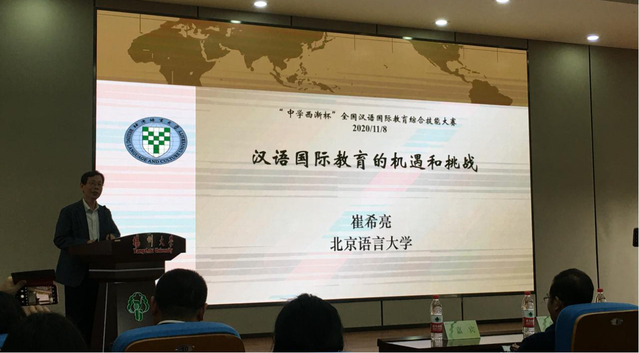 11月8日下午2时,颁奖大会于扬州大学报告厅举行。大会伊始,来自北京语言大学的崔希亮教授发表了重要讲话,在表达对在场所有怀揣着汉教梦的学子的热情祝贺与殷切期待的同时,也分析了汉教事业当下面临的挑战和机遇,为万千汉教人指明了前进的道路。协办方中学西渐公司的创始人林梅杨以敏锐的思维和卓越的眼光,带来了一场思想盛宴,以企业的角度为汉教事业点燃了又一支朝气蓬勃的炬火。庄重的颁奖典礼后,大会在热烈而亲切的氛围中圆满结束。