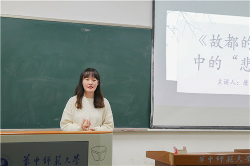 随后,第二组的18级选手谢晓雯用表格的形式带领大家梳理《劝学》的文章结构,条理清晰,思路明确,引人入胜。接下来的17级选手沈炎对“师者,传道授业解惑者也”的主旨发表了演讲,她引用陶行知的“千教万教教人求真,千学万学学做真人”提出语文教师“立德树人”的使命与责任,并对《反对党八股》进行了细致入微的讲解。