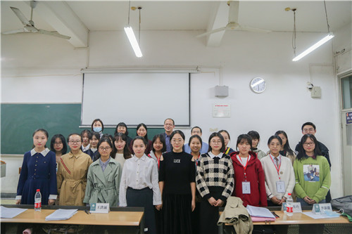 在点评环节中,张筱南老师着重提到授课流程的问题,建议选手们授课时进行课文朗读,完善语文教学。评委点评结束后,比赛继续进行。第三组选手张光敏带领同学们从悲秋传统、作者人生经历方面思考《故都的秋》悲凉的原因。接着,17级胡兰心由细节入手,阐释“百合花”在课文中的象征含义。而17级选手彭佩剖析了《反对党八股》的比喻论证,层层深入,让同学们体会论证的思辨性与逻辑性。
