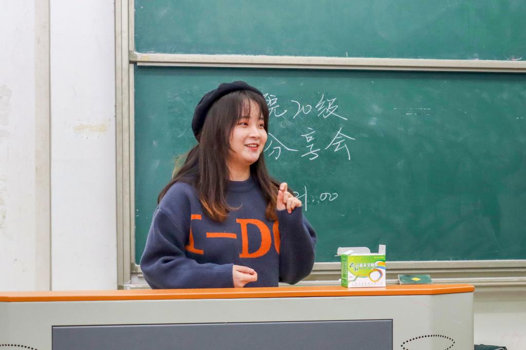 公师场在8210教室举行,在新生发言环节,新生谭淋欢分享了入学以来的感受。针对大一新生普遍的“迷茫”问题,他首先谈到了自己探索历程,并向同学们分享了自己的学习方法。此外,他还提议同学们培养兴趣爱好,以消减迷茫、颓废等负面情绪。