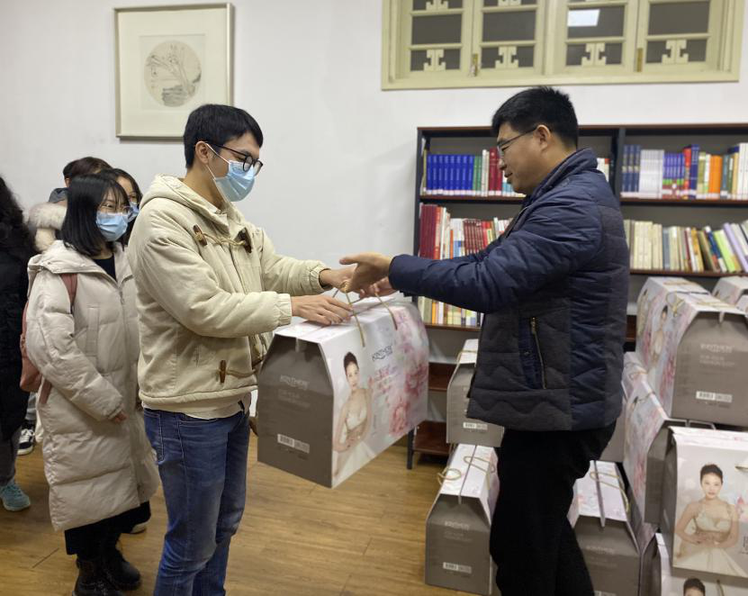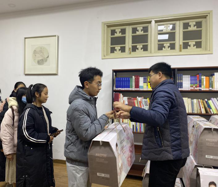 (通讯员 陈若千)2020年12月2日中午,文学院“冬日送暖”活动在学院一楼卡吧开展,分党委副书记徐福刚为60余名贫困学子发放过冬棉被。