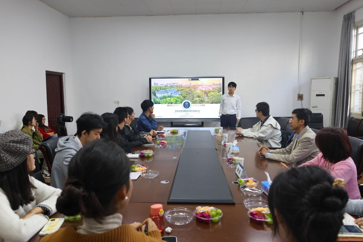 文学院讯(记者 雷滕菲 洪亚琳 李菊慧)11月10至11日,第220期博雅大讲堂暨优秀校友返校分享活动与座谈会分别在文学院一楼报告厅和三楼会议室举行。文学院2007级校友、呼和浩特市第一中学副校长牛杰以“从珞喻路152号到环河街33号——一名公费师范生的成长之路”为题做专题分享报告,文学院2007级首届公费师范生代表牛杰、喻业伟、柳雅参加座谈会,分别就自身发展经历做经验分享。文学院党委副书记桂文亮,本科生辅导员袁瑞磷、叶政通、夏文娟参加活动,各年级师生代表和部分其他学院学生参加报告会,文学院各年级公费师生、优师计划生、少数民族学生代表参加座谈。