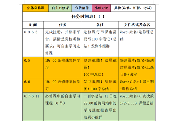 悄然间我们已经上了两周的党课,全体学员在“云端”共同学习党课知识。虽然是线上的自主学习,但老师们也给予了高度的重视,并详细介绍了课程具体的工作安排与考勤方式。老师和班委结合实际情况,为我们制定了详细的学习计划表,将任务落实到每一天,让我们认识到即使是线上自主学习,也不能对它有一丝的轻视和放松。全体学员遵守上课纪律,按时签到打卡,认真聆听各位老师对党史的精辟解析,老师们独到的见解让我们深受教育和鼓舞。通过这次学习,同学们坚定了追求共产主义理想的信念与决心,立志做有责任有担当的当代新青年!