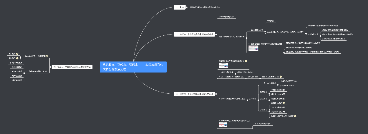 新中国成立以后,面对一贫如洗的局面,党继续带领人民开展工业革命,使我国的经济得到发展,综合国力逐渐增强。十一届三中全会后,党做出了改革开放的伟大决定,中国的发展逐步与世界接轨,综合国力显著增强,国际地位显著提高,中国人们富了起来。“站起来”是中华民族实现伟大复兴的前提;“富起来”是中华民族实现伟大复兴的基础;“强起来”是中华民族实现伟大复兴的保障。其中,“站起来”的标志是实现独立,建设新中国,而中国共产党的成立标志着中华民族的命运开始发生历史性、根本性的转折。