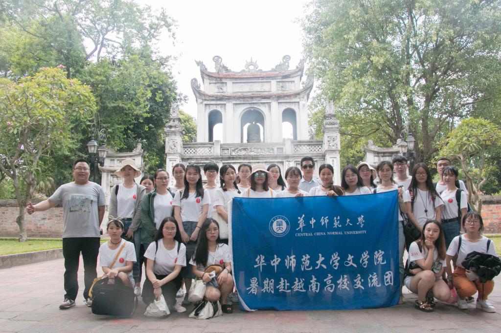 (通讯员:陈新月)7月6日,由文学院党委副书记梁伟、文学院辅导员杨朝清带领的越南交流团的25名同学来到昇龙大学交流。本次交流由昇龙大学曾毕业于华中师范大学的校友阮氏中秋带领交流团一行人参观了大学环境并做关于本次越南交流主题的探讨。