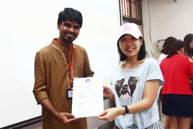 结业式上,台湾中正大学教授Simon梁高度赞扬了交流团此次赴台研修活动对两岸文化交流的重要意义,并寄语交流团同学在大学期间应充分利用时间,广泛阅读,建立自己的论述能力和思考的理论基础。随后Simon梁与Blanca汪给交流团的每位同学颁发结业证书,所有与会人员在现场合影留念。