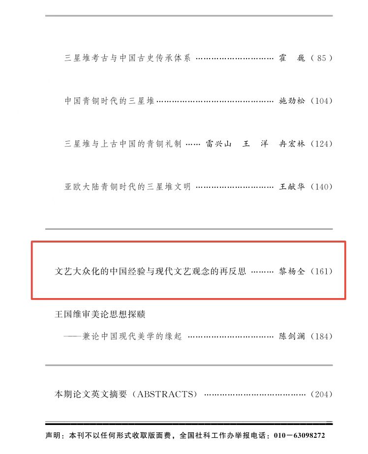 (通讯员 付杨)近日,文学院黎杨全教授的学术论文《文艺大众化的中国经验与现代文艺观念的再反思》在《中国社会科学》2023年第1期发表。