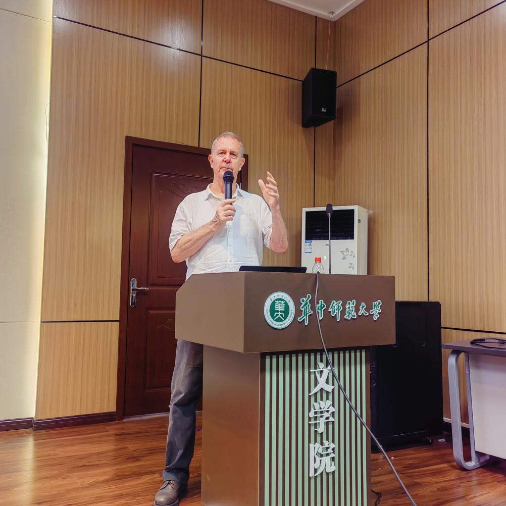 (通讯员曾晟琳 李芊慧)2023年6月23日上午,国际知名学者、澳大利亚新南威尔士大学荣休教授保罗·帕顿应邀做客桂子山人文论坛,在文学院一楼报告厅带来了主题为“德勒兹、马克思与文学”的学术讲座。本次讲座由华中师范大学文学院颜芳老师主持,外语学院卢春晖老师翻译,文学院各专业的硕博研究生参加了这次学术交流活动。