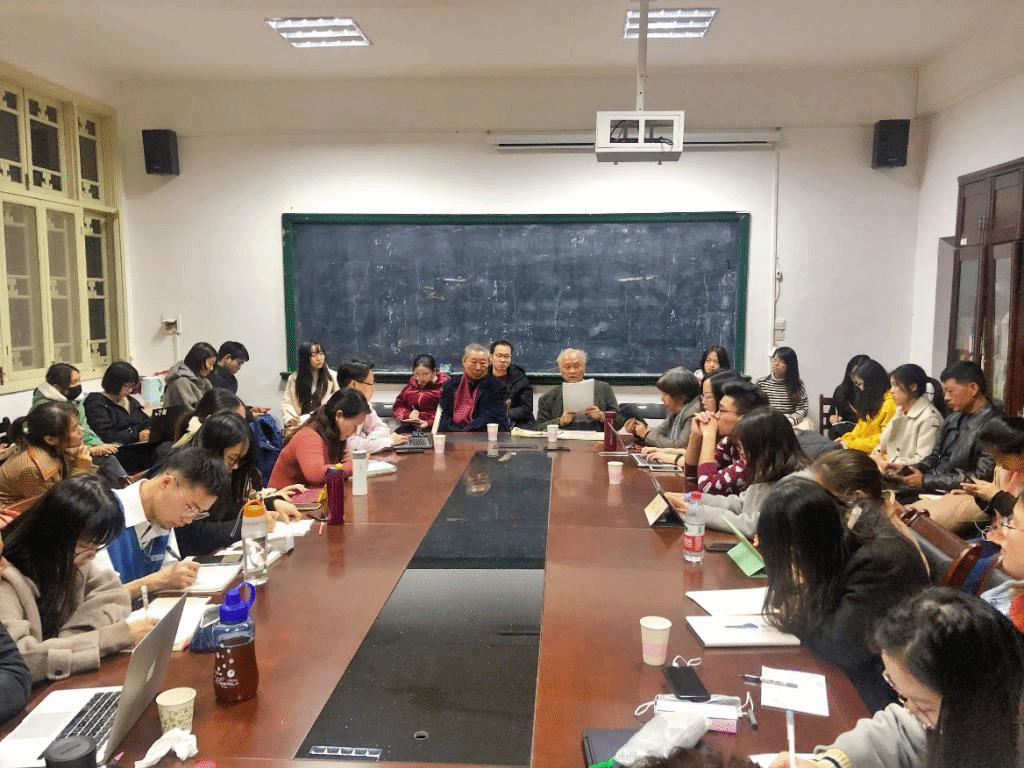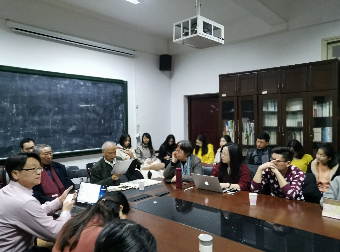 (通讯员 程欣、马志明) 2019年12月14日晚7点30分,复旦大学文科资深教授、中文系博士生导师、文艺理论家、美学家朱立元教授做客华中师范大学桂子山人文论坛,在文学院文艺学教研室做了“谈谈蒋孔阳实践美学思想”的专题讲座,讲座由胡亚敏教授主持,文学院张玉能教授、王庆卫教授、刘涛副教授、颜芳、王海龙等老师与会,来自文学院各专业的硕博士研究生们踊跃参加。