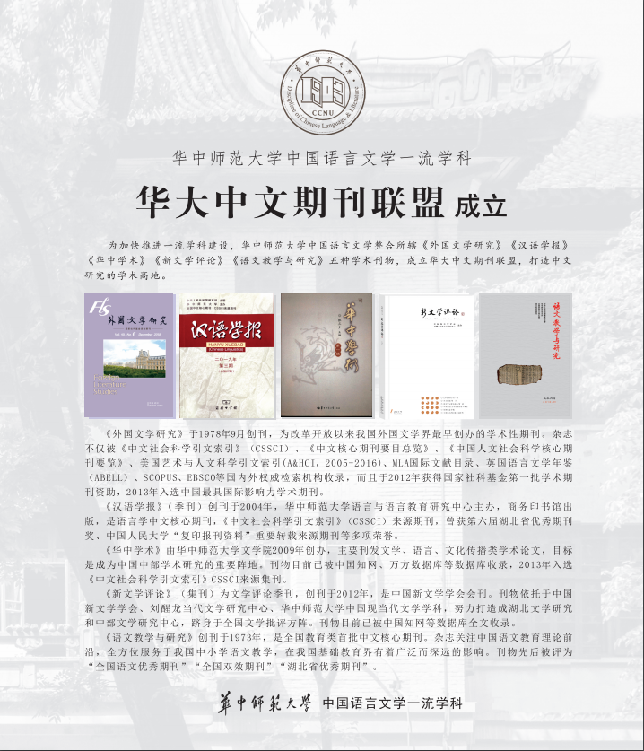胡亚敏教授提出一流学科必须要有一流期刊,两者相互依托、相互促进。通过“联盟”将《语文教学与研究》打造成有师范特色的期刊,继续为基础教育做好服务;《汉语学报》、《外国文学研究》、《华中学术》、《新文学评论》致力于一流学科的建设发展,鼓励“联盟”期刊为每个学科推出主打特色栏目。依托“云上中文”、“华大中文国际科研合作平台”、“华大中文期刊联盟”三大平台进行模式创新,打造华大中文一流学科品牌。